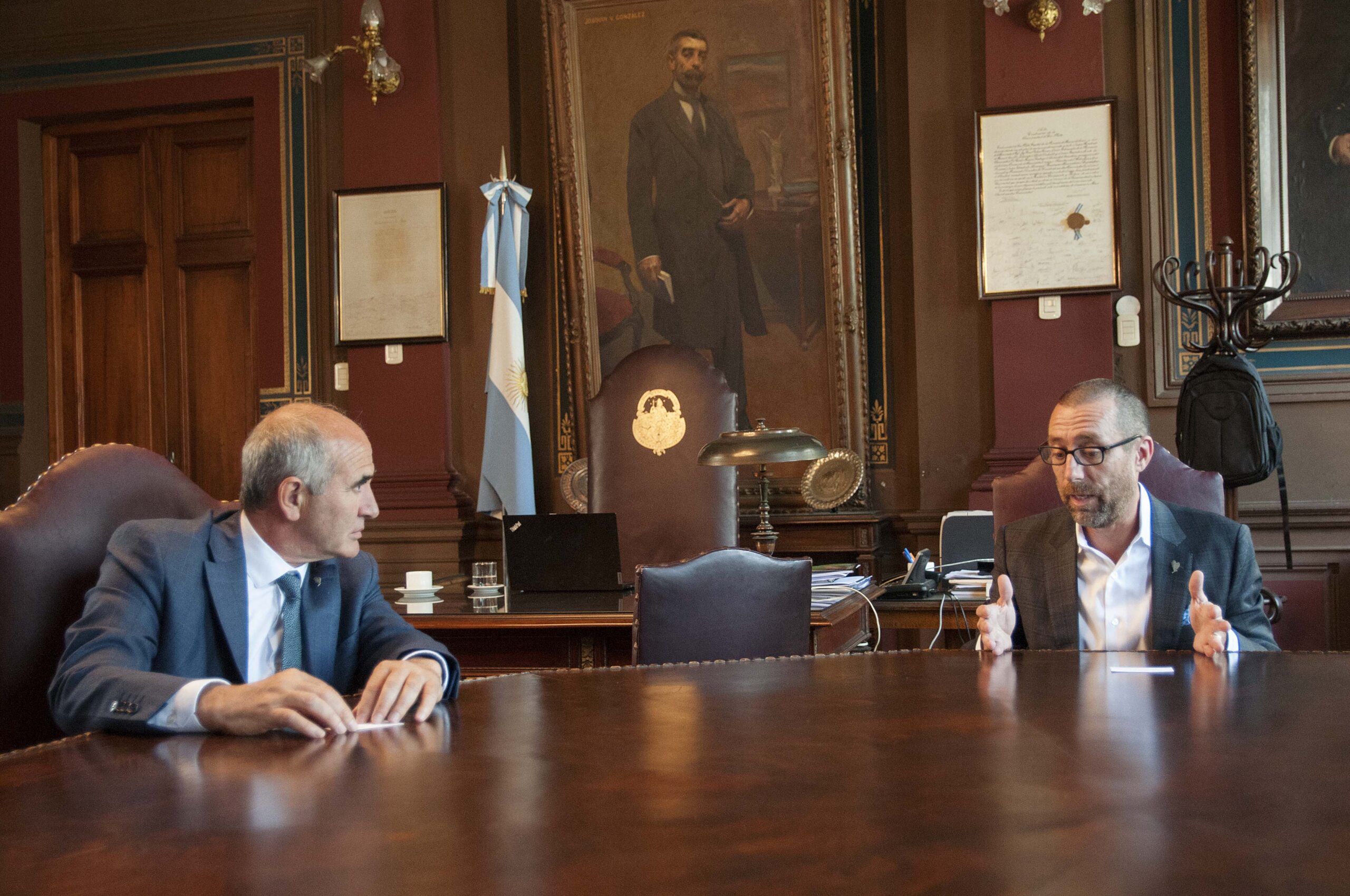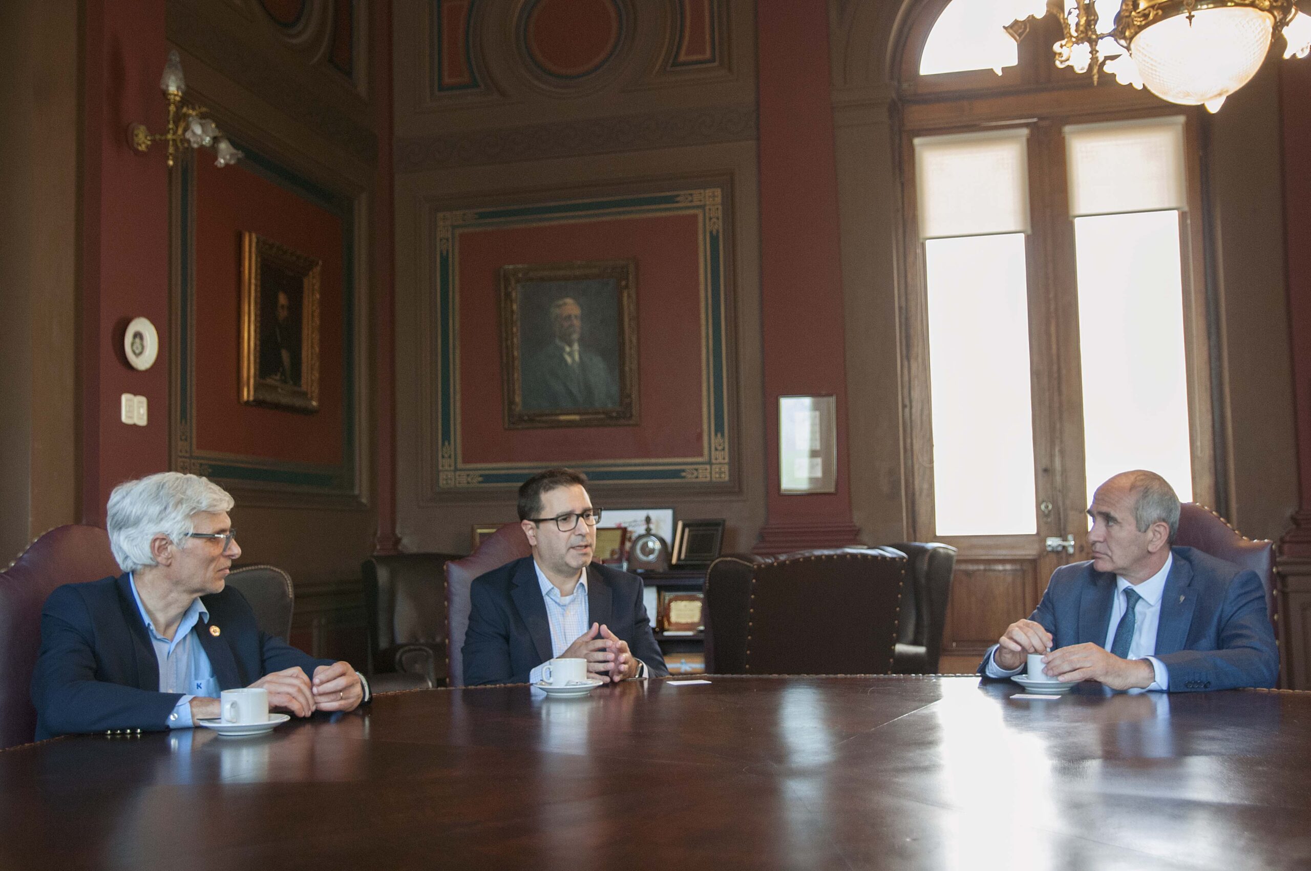 El presidente de la Universidad Nacional de La Plata, Martin López Armengol, recibió en su despacho, junto al decano de la facultad de Ingeniería, Marcos Actis, la visita del profesor de la Universidad de California y especialista en robótica, Magnus Egerstedt, y del profesor Julián Rimoli, director del Departamento de Ingeniería Mecánica y Aeroespacial de dicha institución, y egresado de la UNLP. De la reunión participó también la prosecretaria de Relaciones Internacionales de la UNLP, Graciela Humbert Lan.