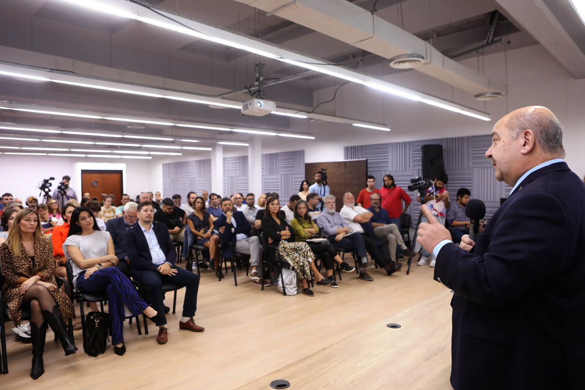 Con un auditorio colmado de público, en el edificio Sergio Karakachoff, Tauber ofreció una conferencia titulada “Universidad pública y compromiso. Cien años de extensión transformadora”.