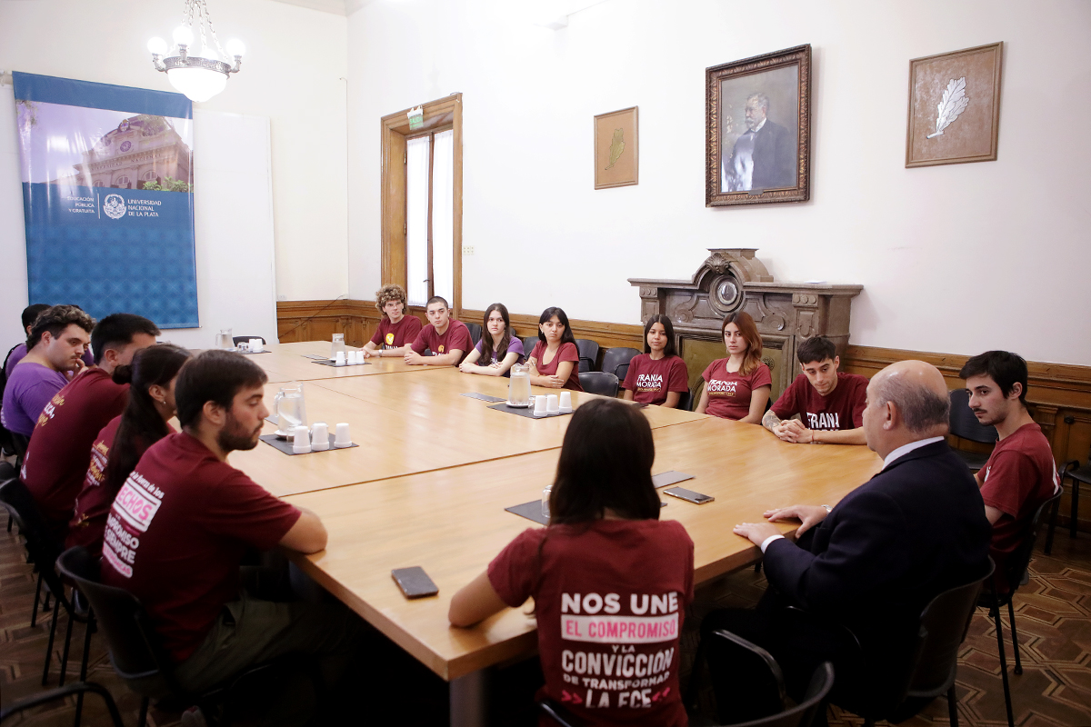 El vicepresidente académico de la Universidad Nacional de La Plata, Fernando Tauber, recibió a una delegación de Franja Morada, la agrupación política estudiantil que hoy es conducción en 10 de las 17 facultades de la casa de estudios platense. El encuentro marcó el inicio de una nutrida agenda de reuniones que continuará desarrollándose en estos días con referentes de todas las agrupaciones que componen el arco político universitario.