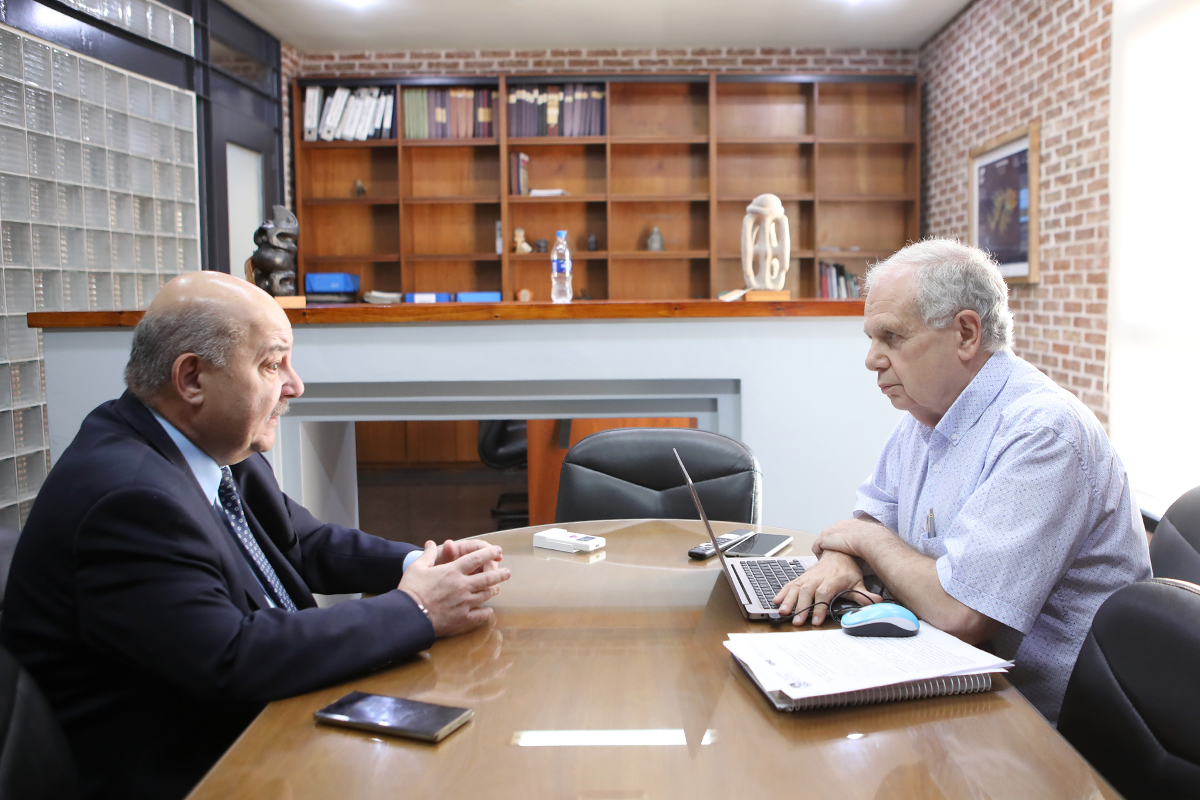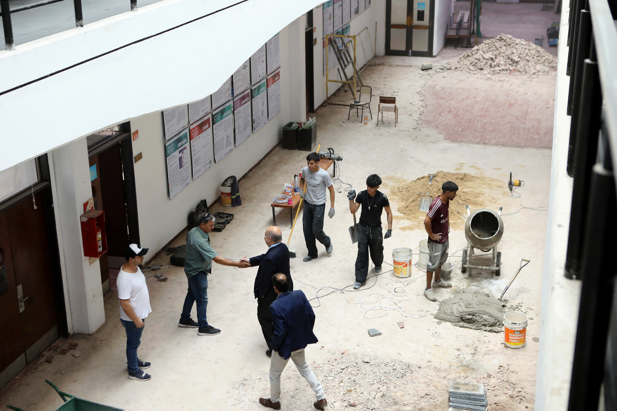 Durante la ronda de encuentros, Tauber también estuvo en la facultad de Ciencias Económicas para conversar con su decano, Eduardo De Giusti. Allí aprovecharon para recorrer el avance de la obra de reacondicionamiento integral de la primera planta del edificio central, que incluye la remoción completa del antiguo piso de mosaicos –ya deteriorado por el paso de los años-, que será reemplazado por un nuevo piso granítico. También vieron los trabajos de puesta en valor de los grupos sanitarios en el primero y segundo subsuelo, entrepiso y primer piso, incluyendo renovación de instalaciones principales, recambio de solados y revestimientos.