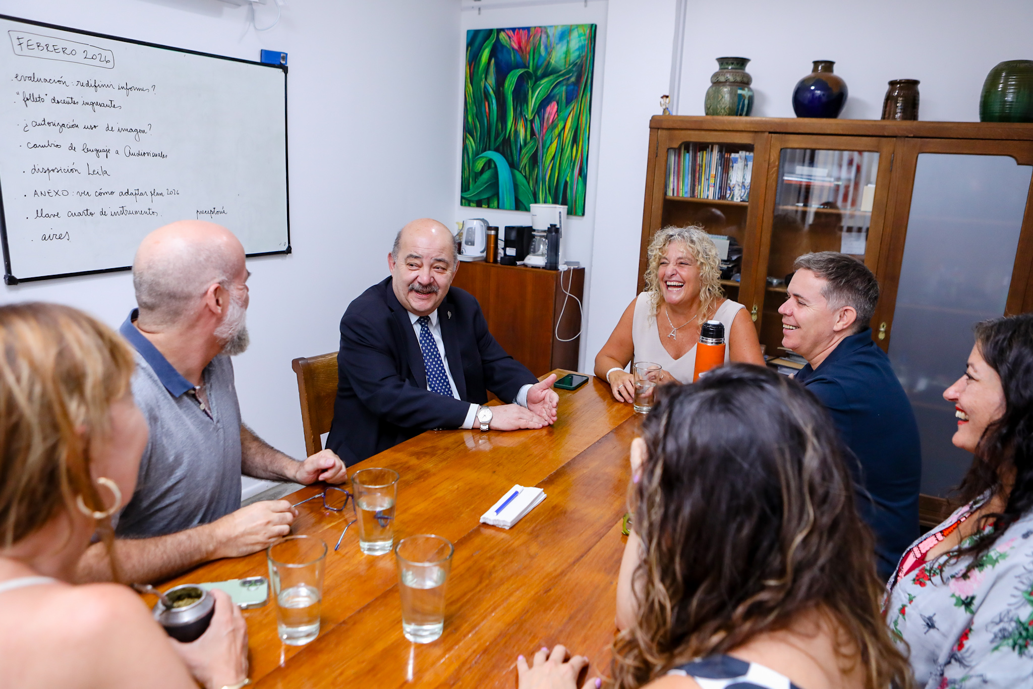 Luego se reunió en la Facultad de Ciencias Astronómicas, con su decana Amalia Meza, su vice Santiago Perdomo, y la secretaria Académica, Elfriede Chalar; en la facultad de Artes fue recibido por el decano Marcelo Belinche, su vice Juan Fernández, y la secretaria Académica Graciana Pérez Lus; en Trabajo Social se reunió con la decana Alejandra Wagner y su vice José Scelsio; en Periodismo conversó con la decana, Ayelén Sudun y su vice, Leandro Quiroga; mientras que en Psicología compartió la charla con la decana María Cristina Piro.