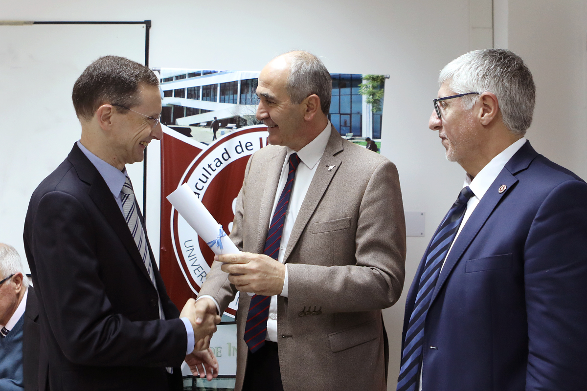 La distinción fue entregada por el presidente de la UNLP Martín López Armengol, junto al decano de la Facultad de Informática, Marcelo Naiouf. También estuvieron presentes en el acto el secretario General de la Universidad, Patricio Lorente, la directora del III-LIDI, Patricia Pesado, el coordinador de Posgrado de Informática, Armando De Giusti y la secretaria de Ciencia y Técnica de la Facultad, Laura Lanzarini.
