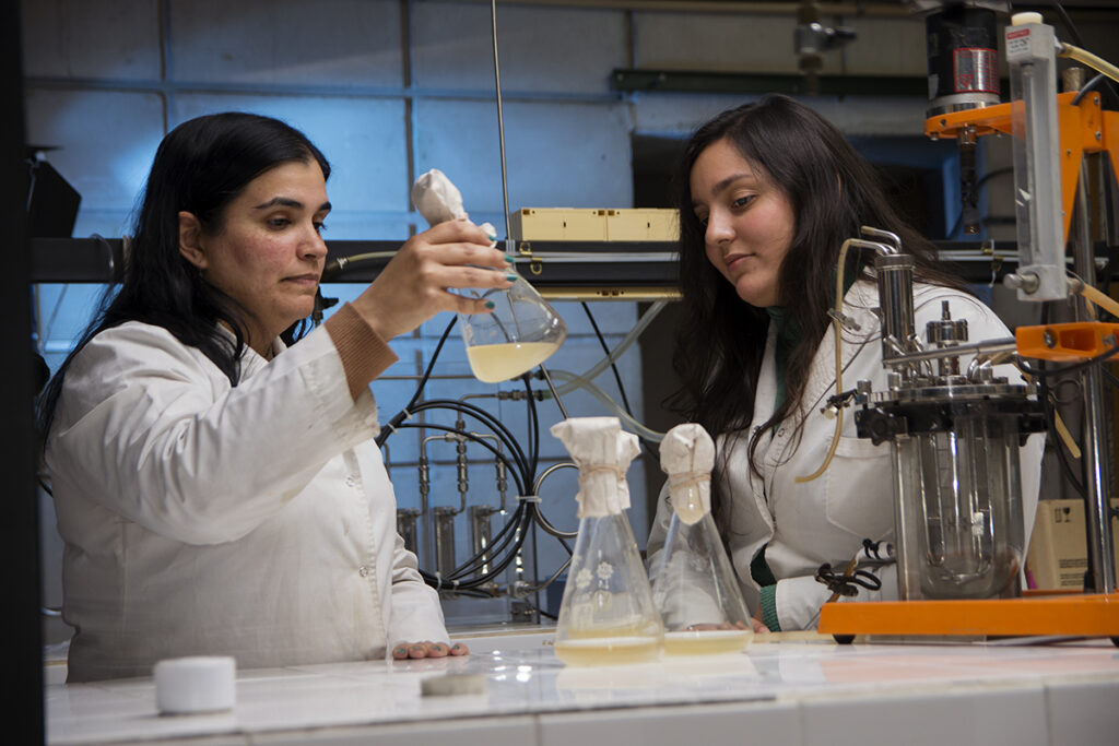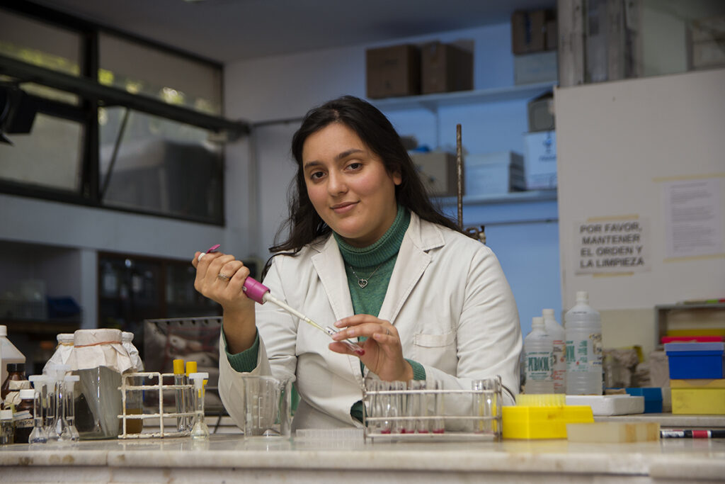 “Cuando comencé a pensar en mi tesis solo estaba segura de que quería trabajar con biorreactores para poder ganar experiencia en ese ámbito. Al reunirme con quien fue mi directora, me comentó las diferentes líneas de investigación que tenían en su laboratorio y opté por trabajar con colorantes textiles, ya que me resultó interesante encontrar una alternativa biotecnológica y más sostenible a un problema ambiental actual”, comentó Galván.