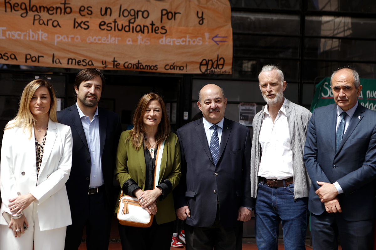 La UNLP firmó el convenio con la dirección Provincial del Instituto Biológico Dr. Tomás Perón (IB). Del acto participaron el presidente de la Universidad, Martín López Armengol, el vicepresidente Académico, Fernando Tauber, la vicepresidenta Institucional, Andrea Varela; y el titular de la cartera de Salud bonaerense, Nicolás Kreplak. También estuvo presente la ministra de las Mujeres, Políticas de Género y Diversidad Sexual de la provincia de Buenos Aires, Estela Díaz; la secretaria de Derechos Humanos y Políticas para la Igualdad de la UNLP, Verónica Cruz; el secretario de Extensión Universitaria, Sebastián Palma; el secretario de Ciencia y Técnica, Nicolás Rendtorff; el decano de Ciencias Exactas, Mauricio Erben; Arturo Hoya, a cargo de la Unidad de Producción de Medicamentos; y otras autoridades de la comunidad universitaria.
